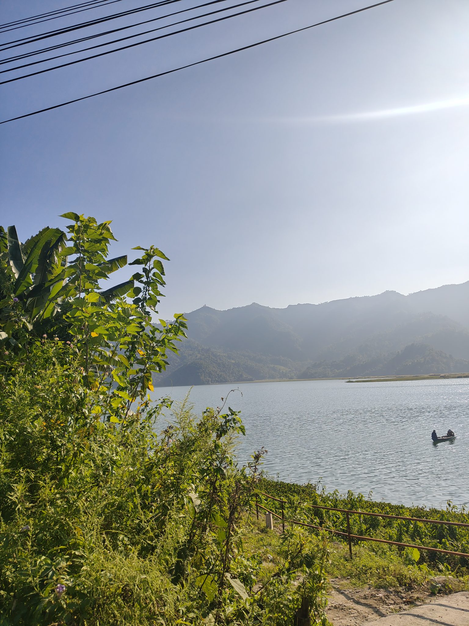 Alternative Text: A serene landscape featuring a calm body of water surrounded by lush greenery and mountainous terrain in the background.