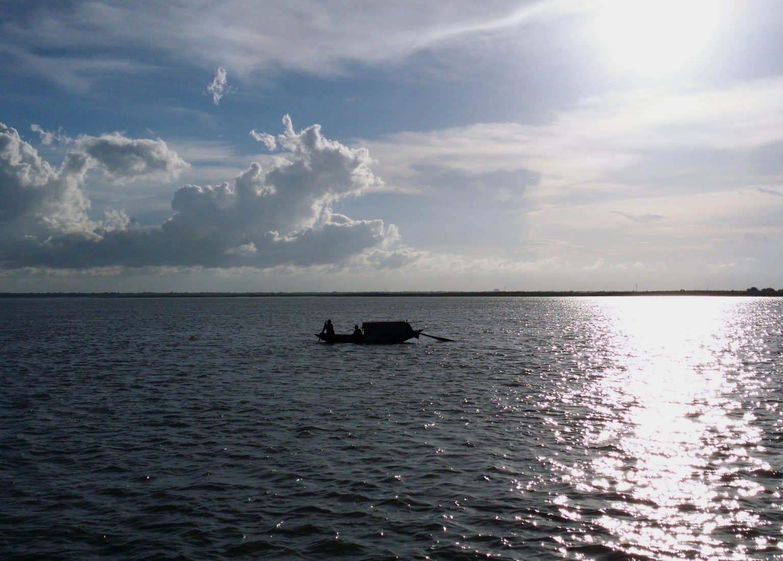 Alternative Text: A boatman rowing his boat across river Padma in Faridpur, Bangladesh in the afternoon.