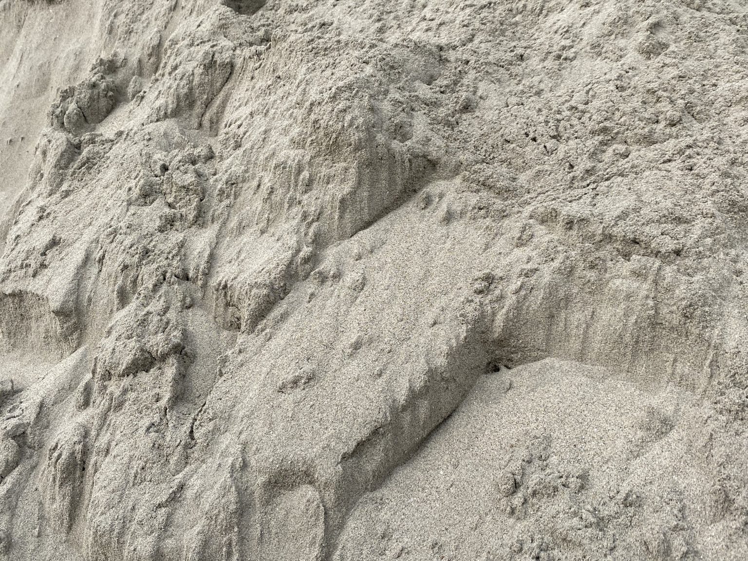 Alternative Text: Close-up of a textured sand dune with visible ridges and layers.