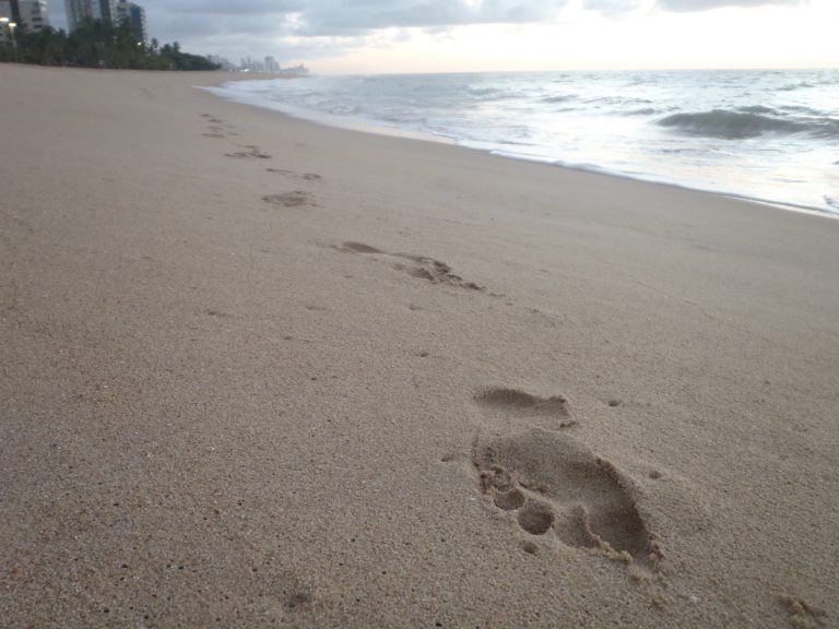 Alternative Text: Footbrints in the sand on the beach