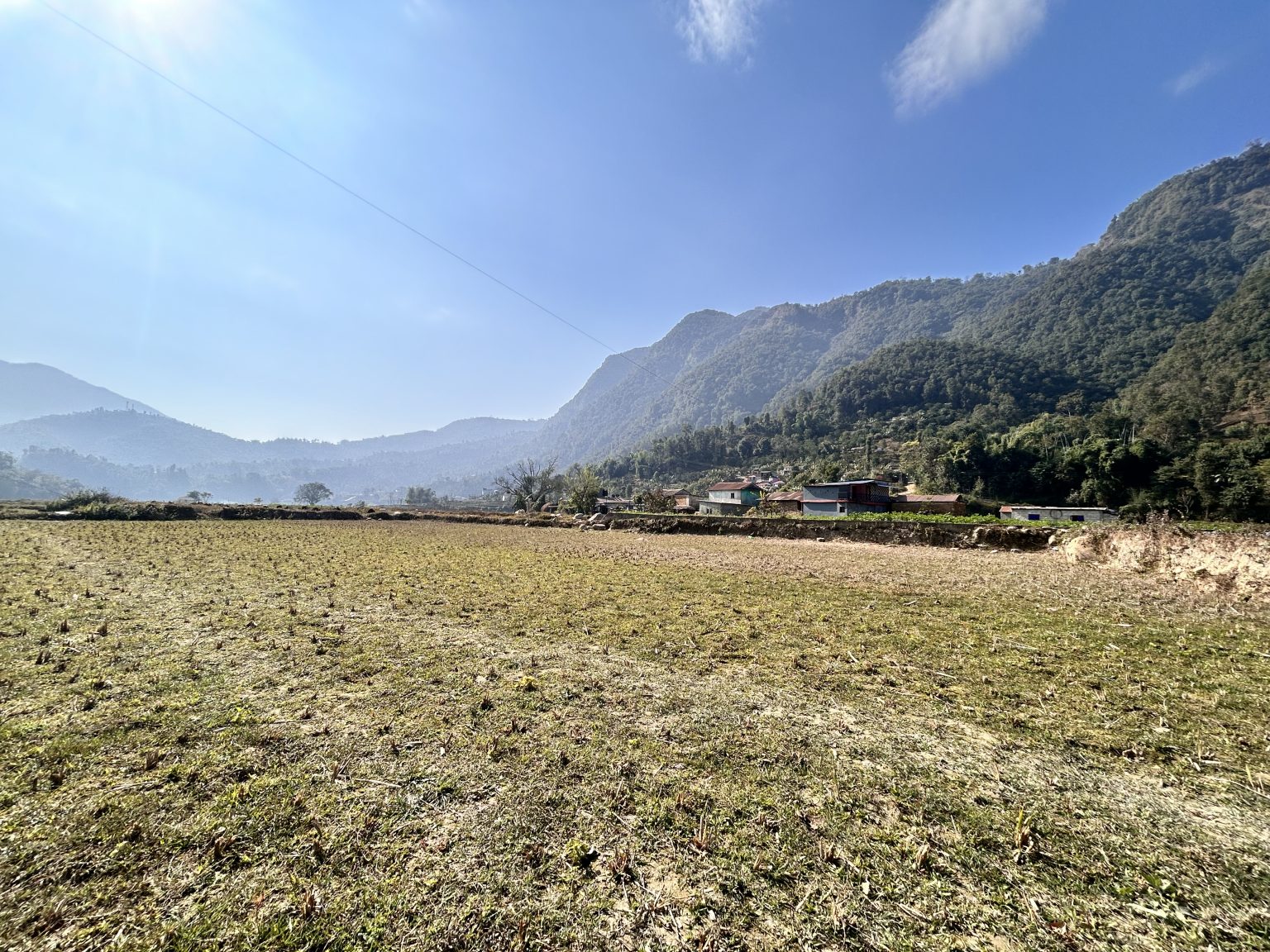 Alternative Text: Arjunchoupari Village: Embraced by green hills, bathed in the morning sun’s golden rays!