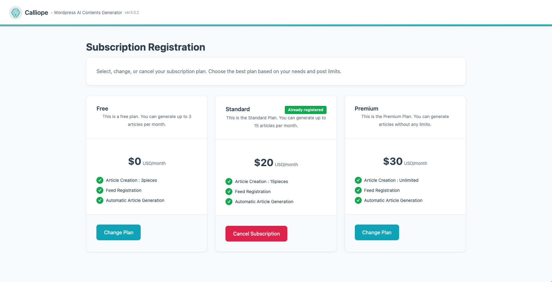 - ๐ Automatic Free Plan: Free plan (3 articles/month) is automatically activated on plugin installation