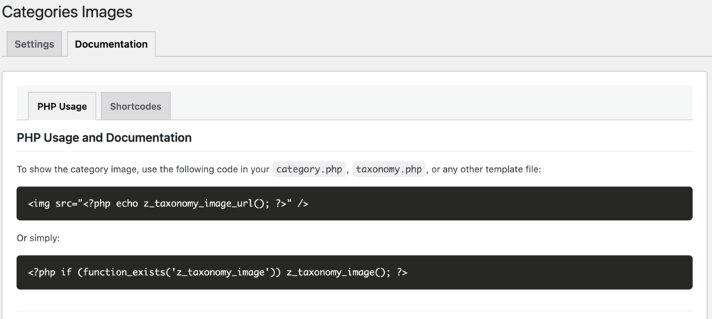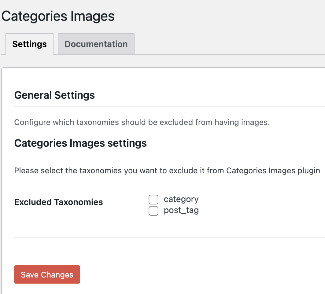 New menu (Categories Images) for the plugin settings.