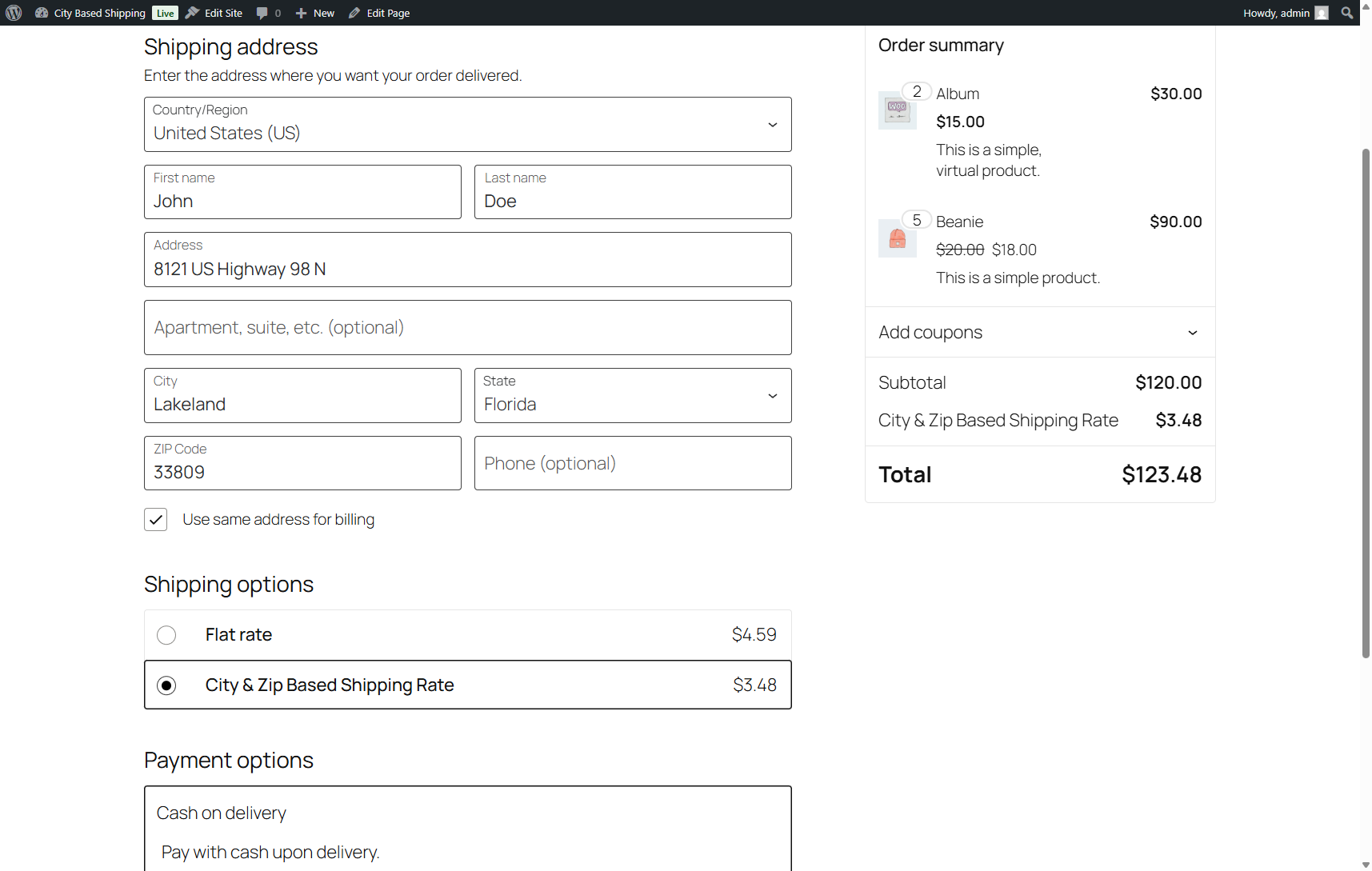 City & Zip Based Shipping Rate for WooCommerce