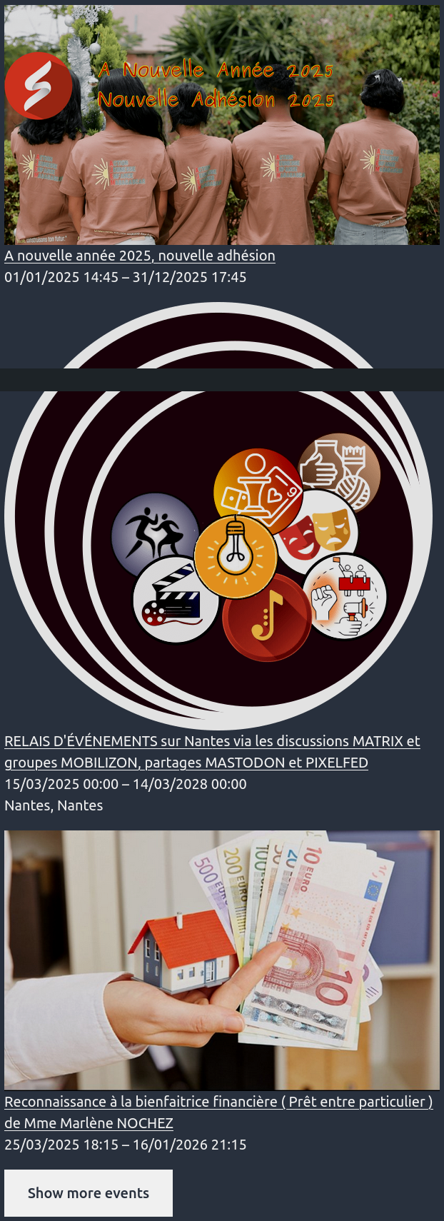 Shortcut format with limiting the number of events to show to 3 for example: [connector-mobilizon-events-list events-count=3]