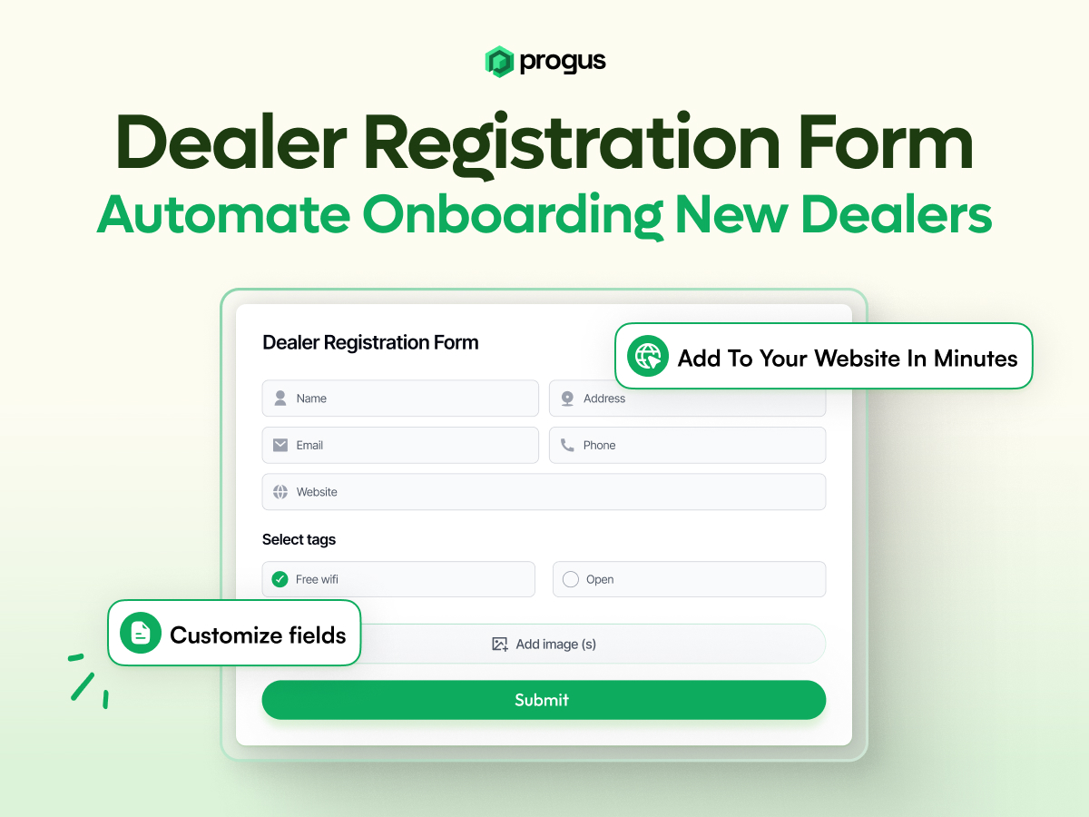 - Progus Dealer Form — https://sl-form.proguscommerce.com/main (embed dealer form via iframe).