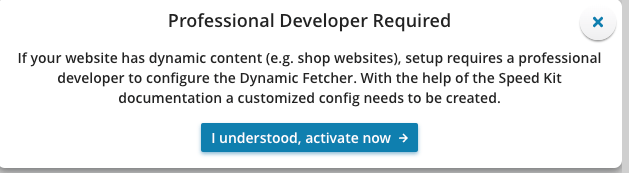 • I get this notice when I activate Speed Kit and it is an eCommerce site. Finding a developer would be a big problem. Isn’t there a generic setting I can use? Or what is it actually referring to? What is the Dynamic Fetcher?