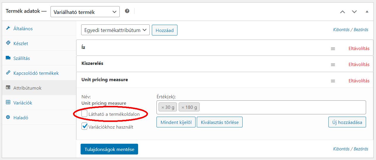 I have some products that has a 10 pack=30g and a 60 pack=180g size variation.I wanted to use this variation to show Google Merchant Center a “Unit pricing measure”. Every different size need a different “Unit pricing measure”. So I need to use the attribute for variations. I can not turn it off.