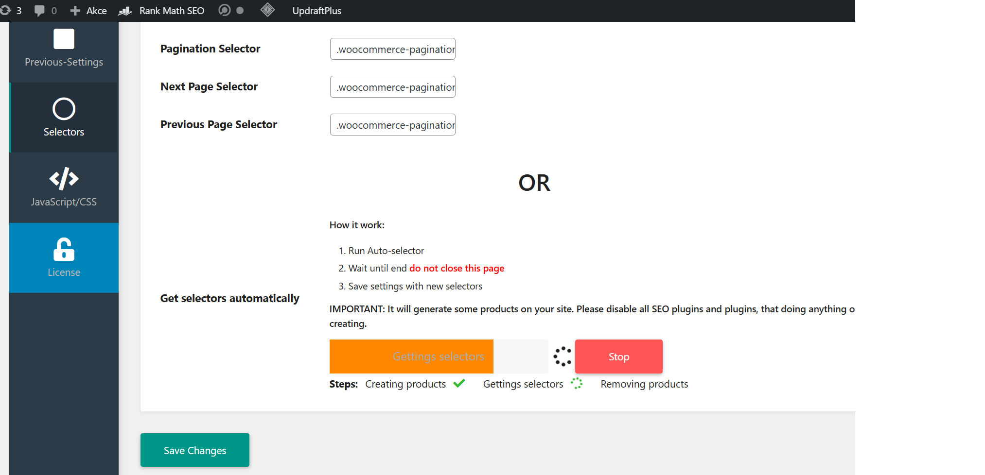 In some cases plugin cannot get selectors from page automatically. In this case check it with browser developer tools instead and set in settings.
