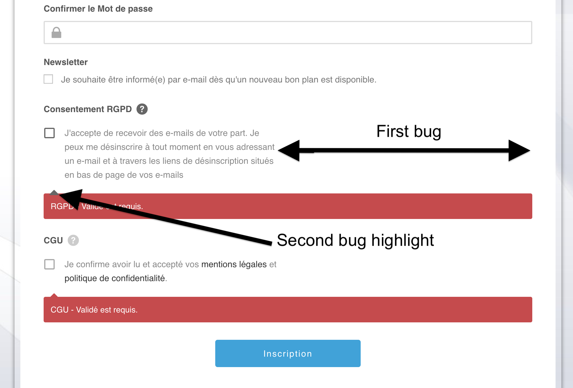 2) When we move the mouse over the notification that indicates the field is required, the arrow is not red but gray.Best regards