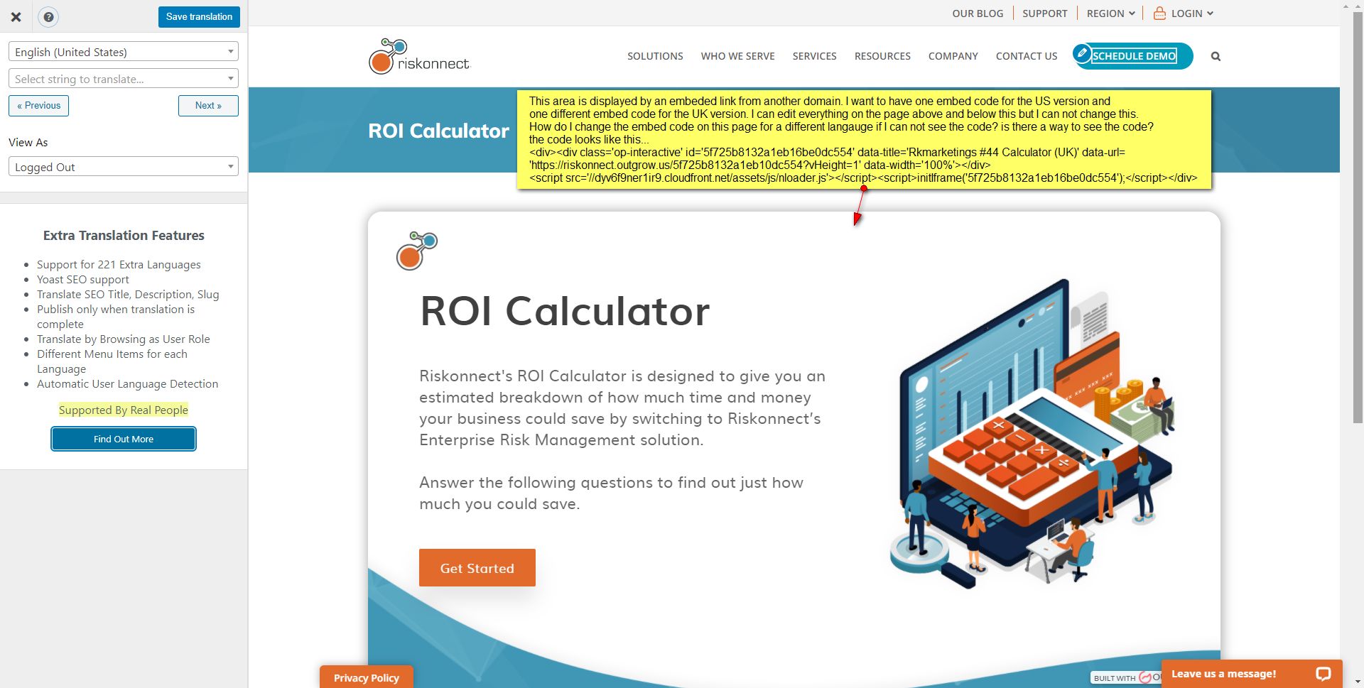 We will have multiple calculator apps that are embedded code as they are hosted by the app creator. We need to have different version of the app embedded for different countries and/or languages, but the translator will not allow us to edit the code. Is there a way to see or edit code directly, even just html, within the translatepress editor, or another way outside of the editor?