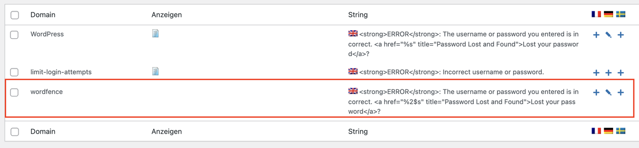 Warning: In case of a problem with translation to your language in another plugin, there is a 99.999% chance that it is caused by Wordfence.
