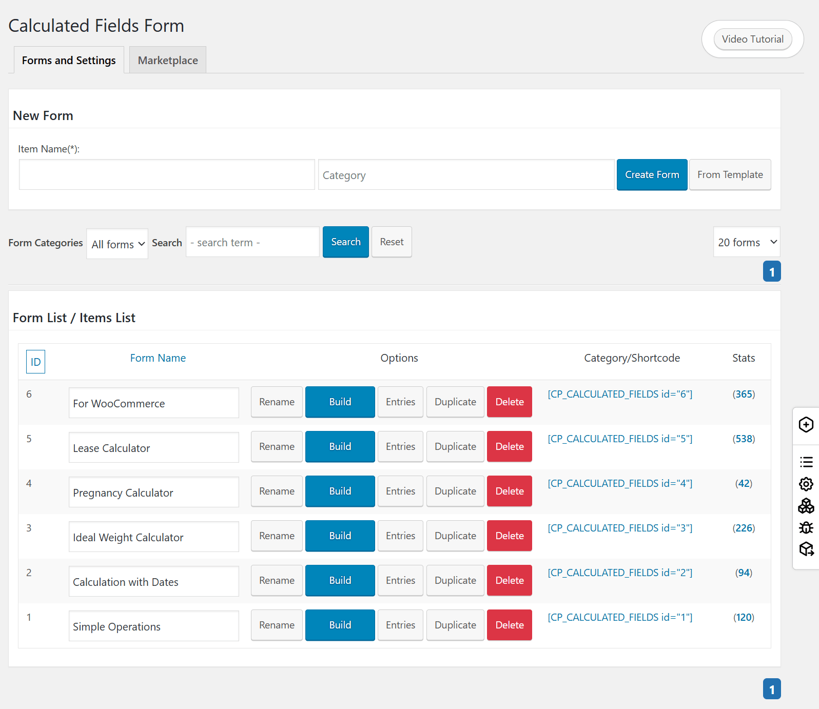 Our plugin includes a forms builder accessible through the menu option “Calculated Fields Form” plugin.