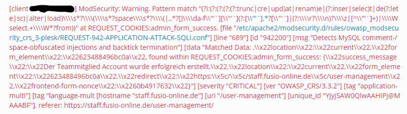 After trying to create a new user in the frontend, Server Error 403 comes up.