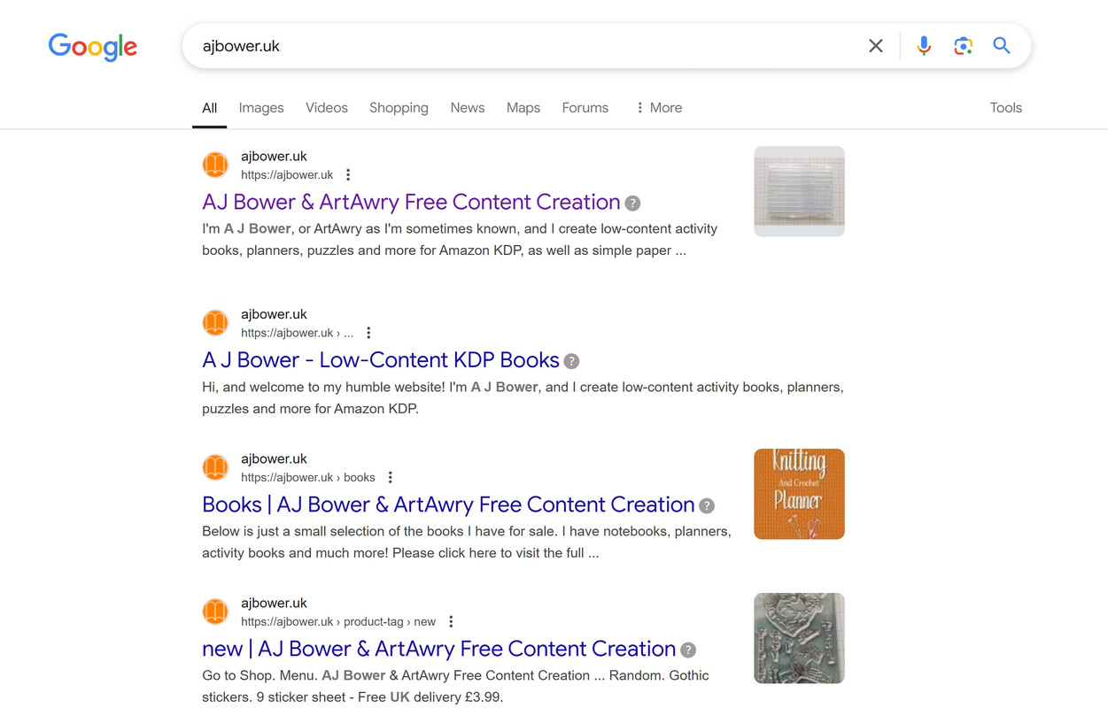 Nebu JohnIf you search Google for ajbower, it’s the first site that shows, ajbower.uk.