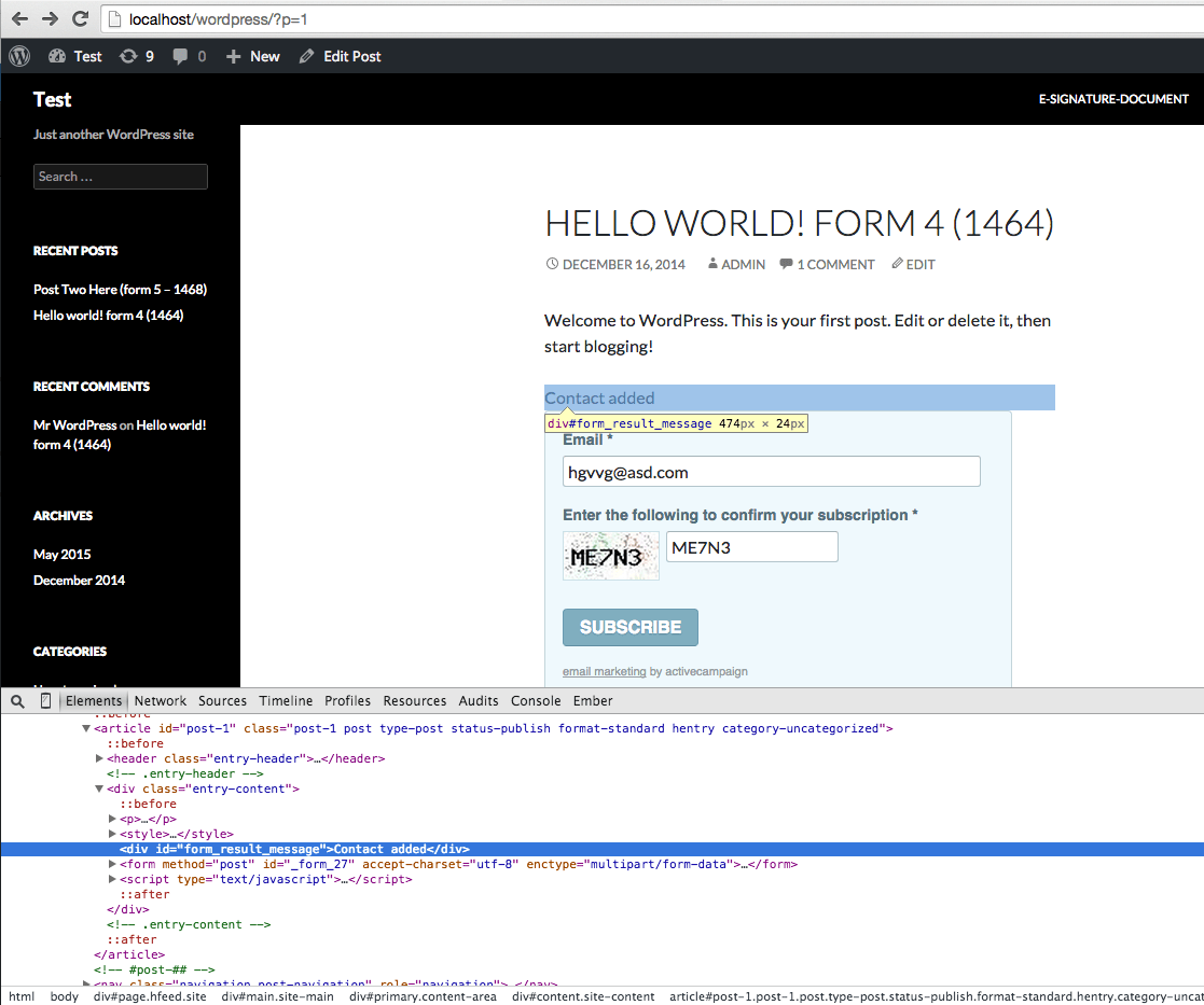 Item 2 will be fixed/improved. I have added either “form_result_success” or “form_result_error” class names to that div based on the Ajax response code.