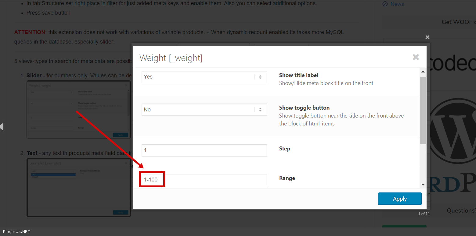 Hello, thank you for the signal, I added it to the task list, this task can be resolved in future by adding action key instead of text like ‘0-100’. Action which can be placed into functions.php file will return prepared real range which data will be taken from meta fields by function get. But what will be open here – logic how to take min and max values, here not exists one-stop solution, and customer will have to resolve it self …