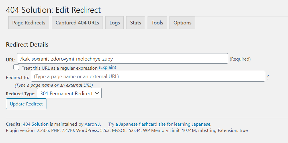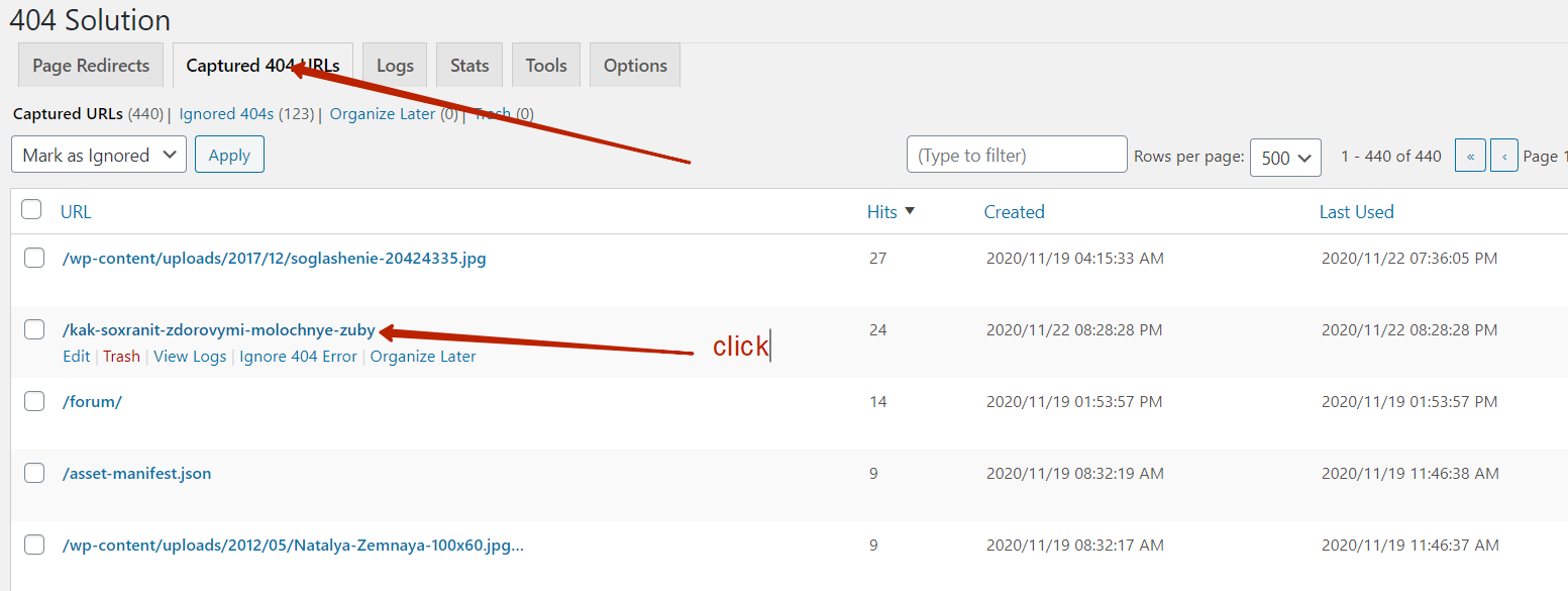 2) Create a new redirect from the “Captured 404 URLs” as you did.