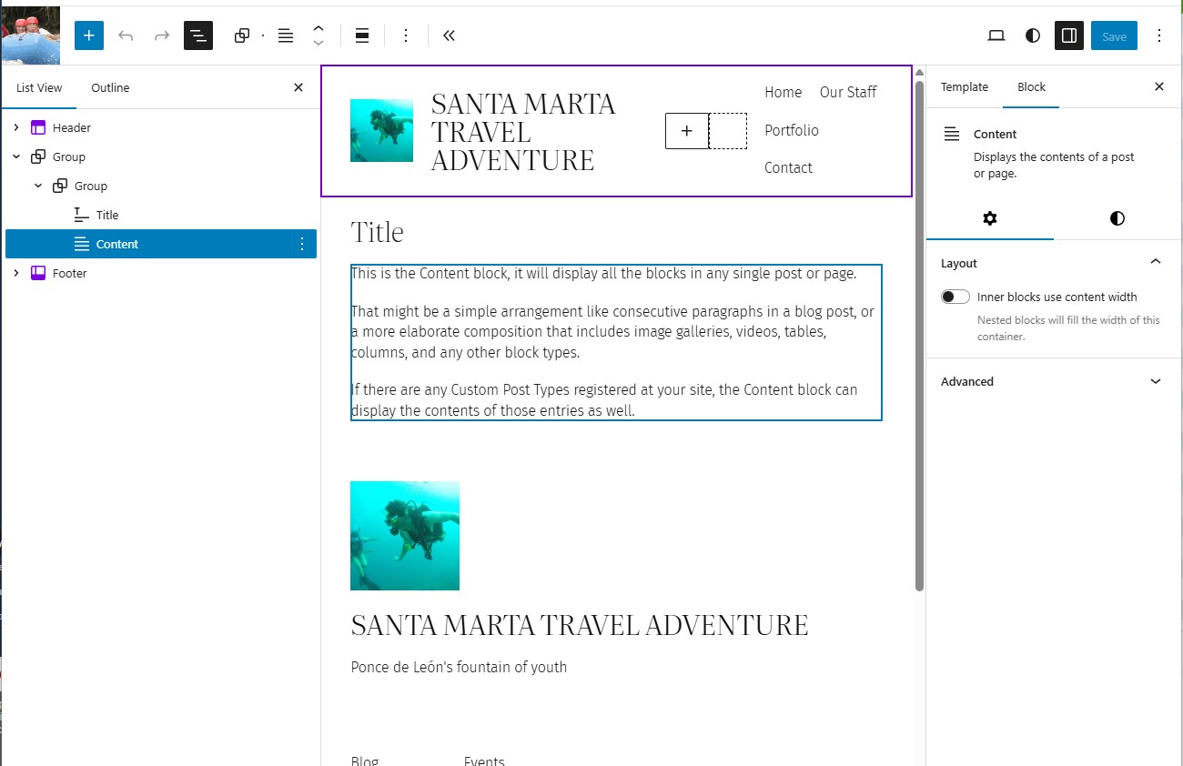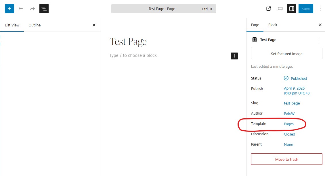When I create a new page the template is “pages” I skip the select a pattern when creating the page and the new page does not have the block structure that