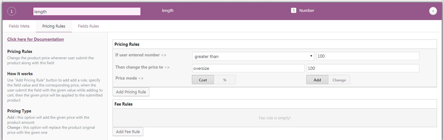 is it possible to tell the plugin from 0 to 100 cm the price is equal to 20 € so that when the user enters a measure that goes in this range automatically calculates the price?