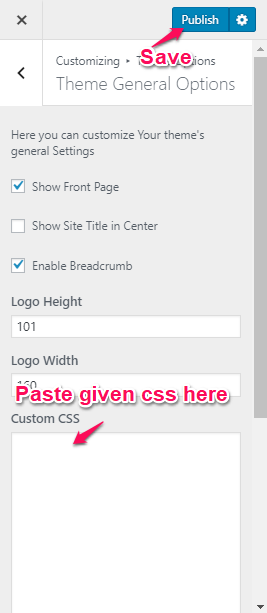 Go to Dashboard -> Appearance -> Customize -> Theme Options -> Theme General Options -> paste the give CSS in Custom CSS box and save –