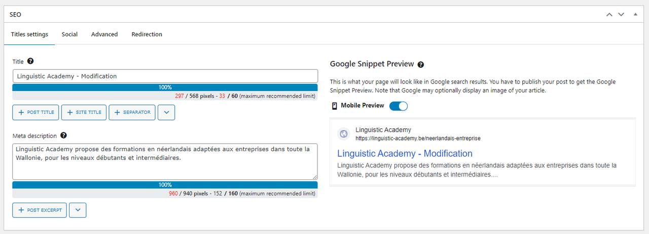 Can you confirm you have also define some global title / meta description from SEO, Titles and metas, Post types tab?