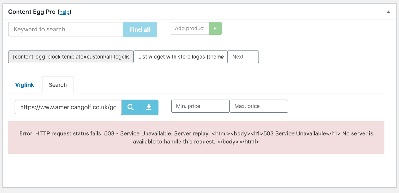 Viglink Error 503