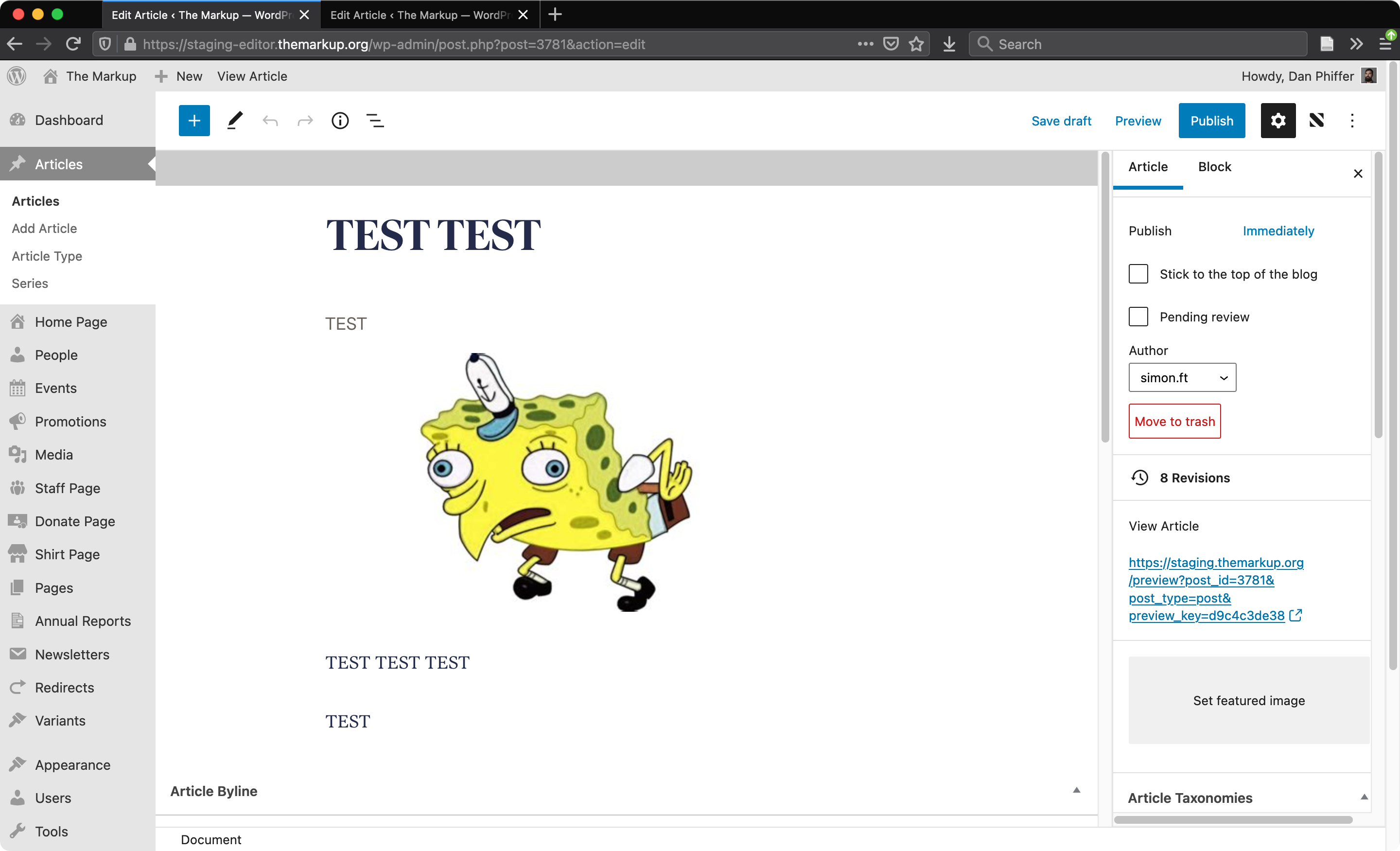 I’ve recently started experimenting with upgrading our self-hosted WordPress CMS to version 5.7 for The Markup. We have a few different environments running: