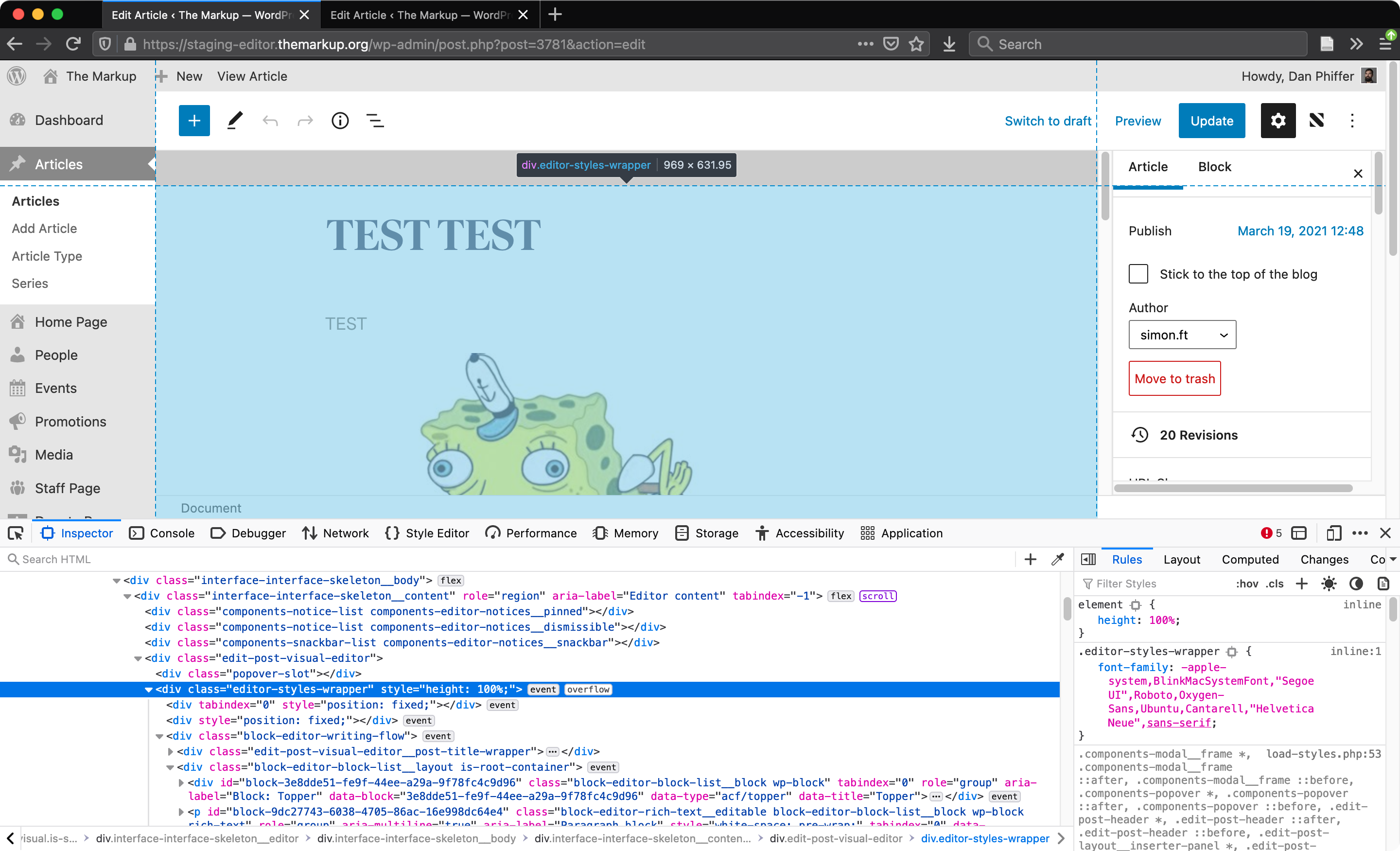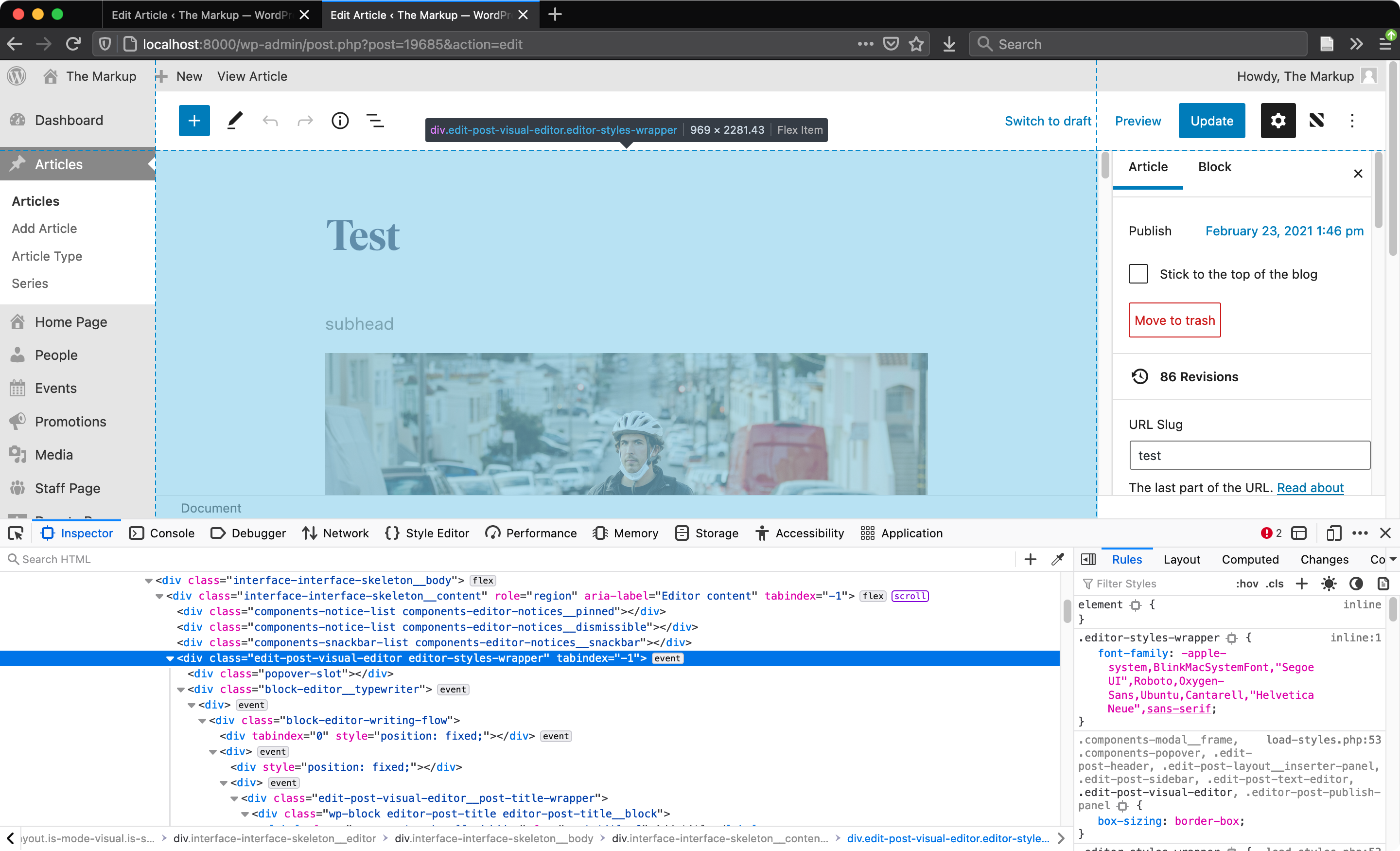 .editor-styles-wrapperdiv as a child of.edit-post-visual-editorwhereas on my local instance the two are one and the same div.Has anyone else seen this? Any advice for how to debug it further? It seems kind of harmless, but I would like to know what it is before I consider putting this version onto our production CMS.