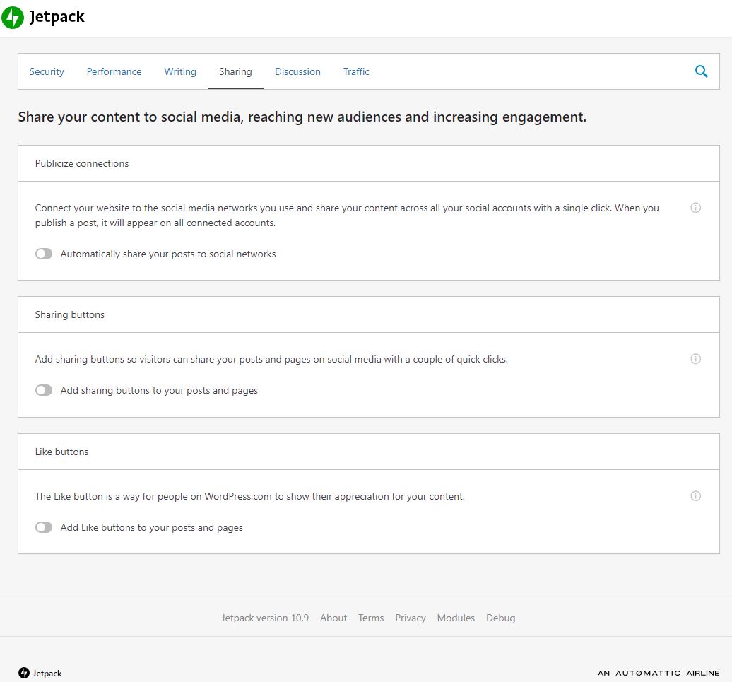 Jetpack says Sharing is off. I’ve tried toggling it off and on to no avail.