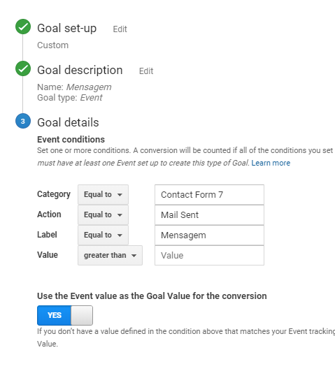 I have no goal set for “Contact Form” category.