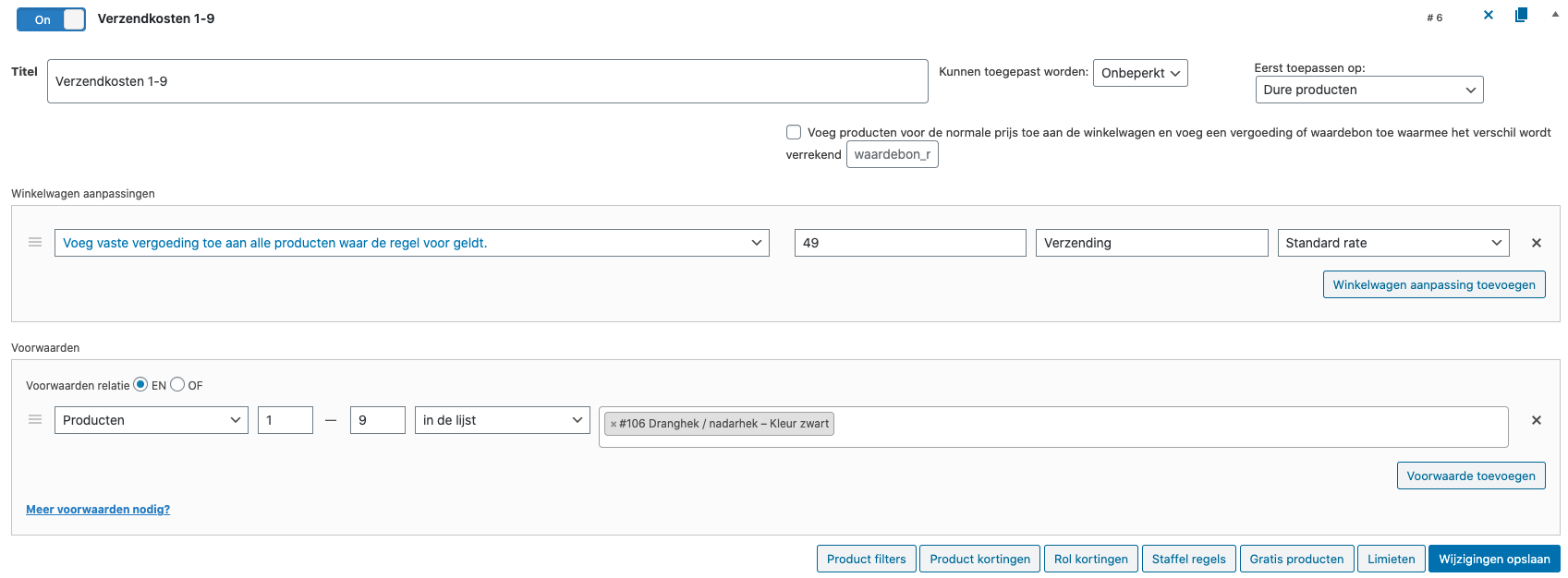 When the user order 1 or more but 9 or less ‘Dranghekken’ the delivery costs are 49 euros.