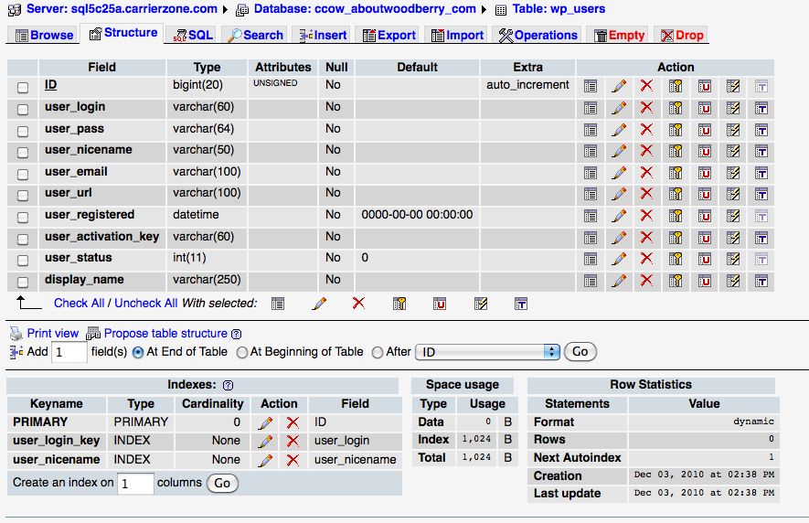 In reply to: WP doesn't recognize my usernameOkay, installed PHPMyAdmin. I’m looking at wp_users. The user_login and user_pass both seem to be blank. Where should the user name and password be located?